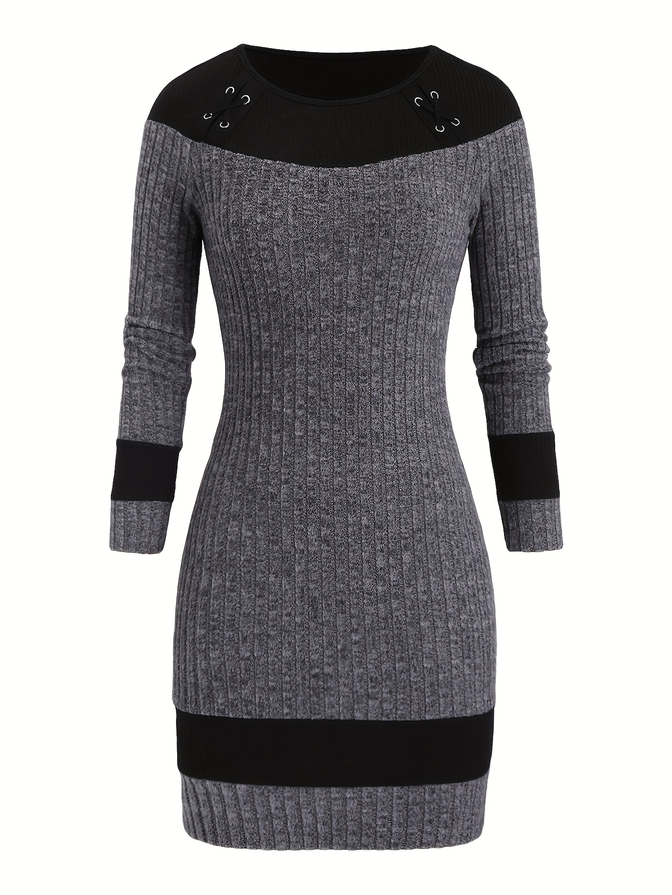 [Chic Plus Size Dress] Plus Size Women's Casual Chic Long Sleeve Dress - Stretchy Office to Party Outfit, Flattering Fit for Everyday & Formal Events, Machine Washable Fall/Spring Attire, Comfortable Material, Versatile Fashion