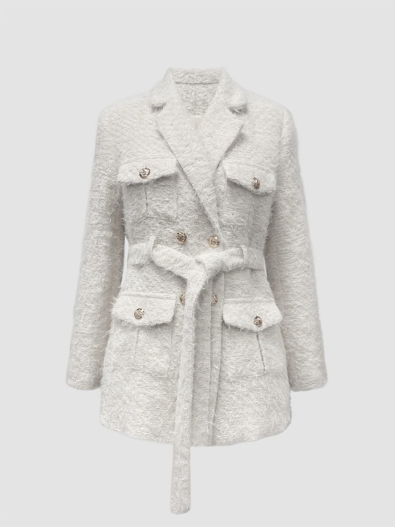 [Elegant Coat] Long Sleeve Elegant Belted Coat | Structured H-Silhouette Jacket with Golden-Tone Buttons & Fur-Lined Cuffs, Machine Washable Solid Color Outerwear for Spring/Fall