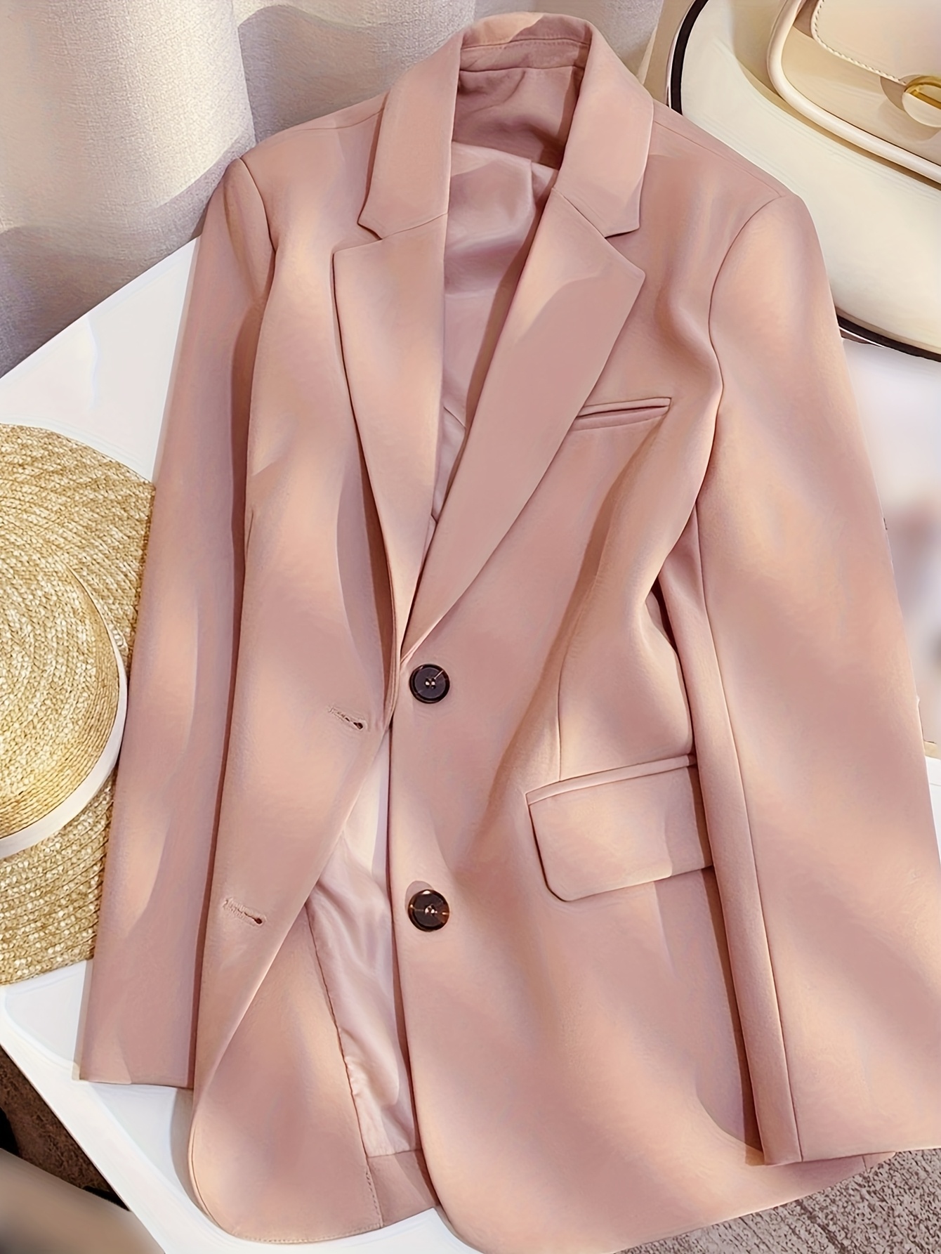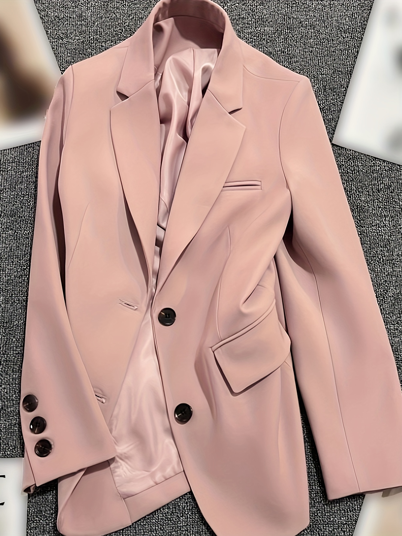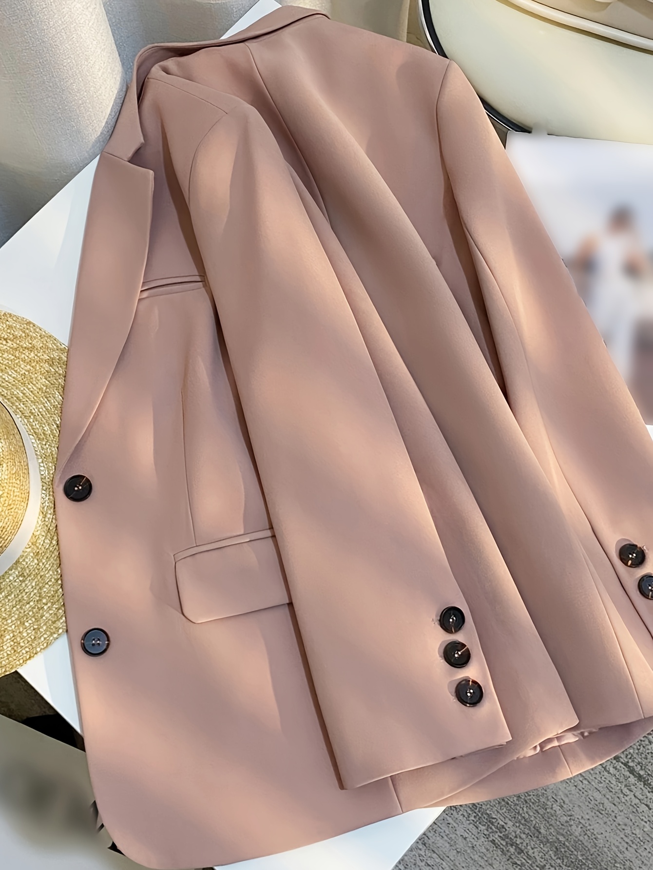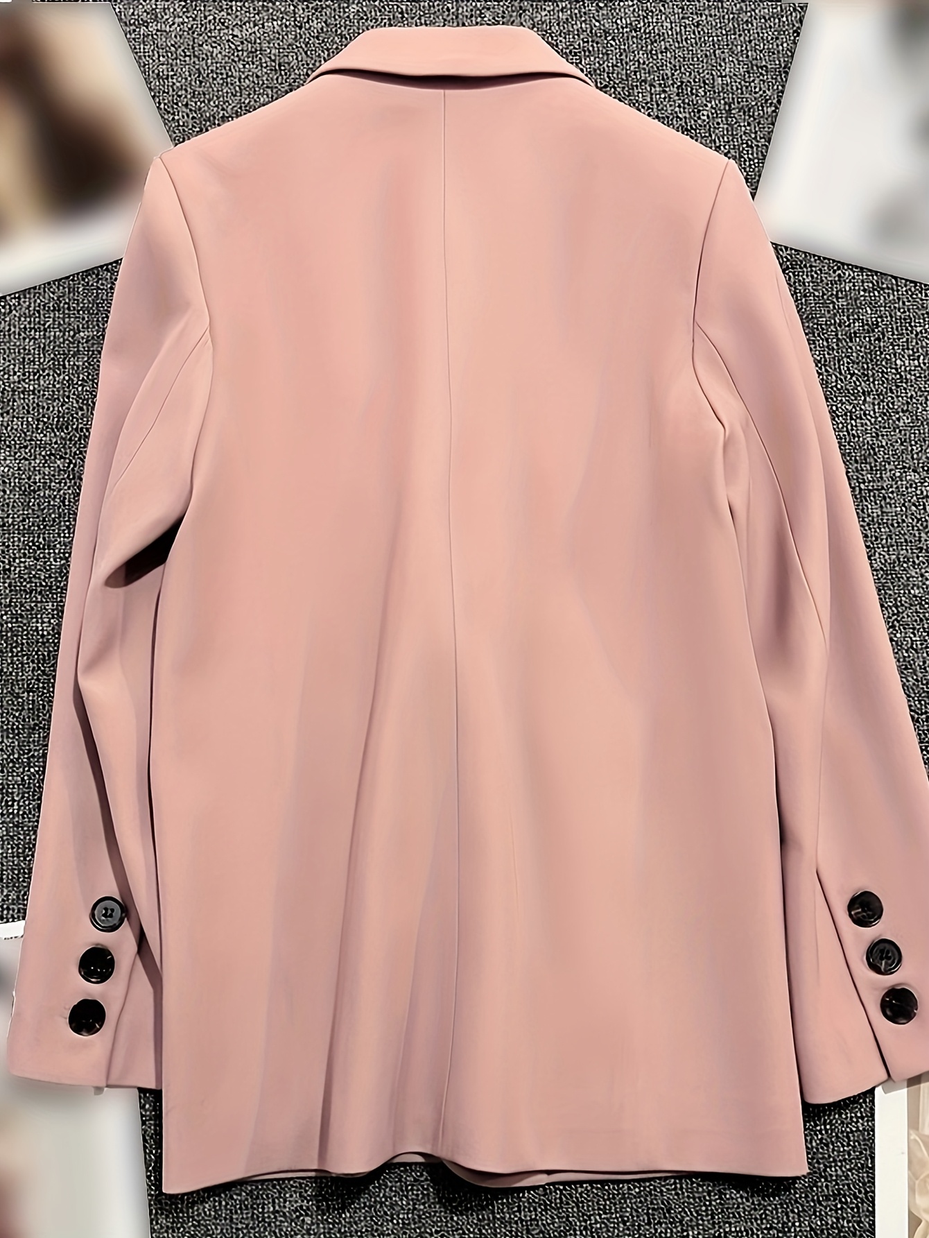 Elegant Pink Double-Breasted Blazer for Women - Versatile Office & Commuter Jacket with Pockets, Long Sleeve, Polyester, Perfect for All Seasons, Office Attire|Sleek Formal Attire|Polyester Blazer