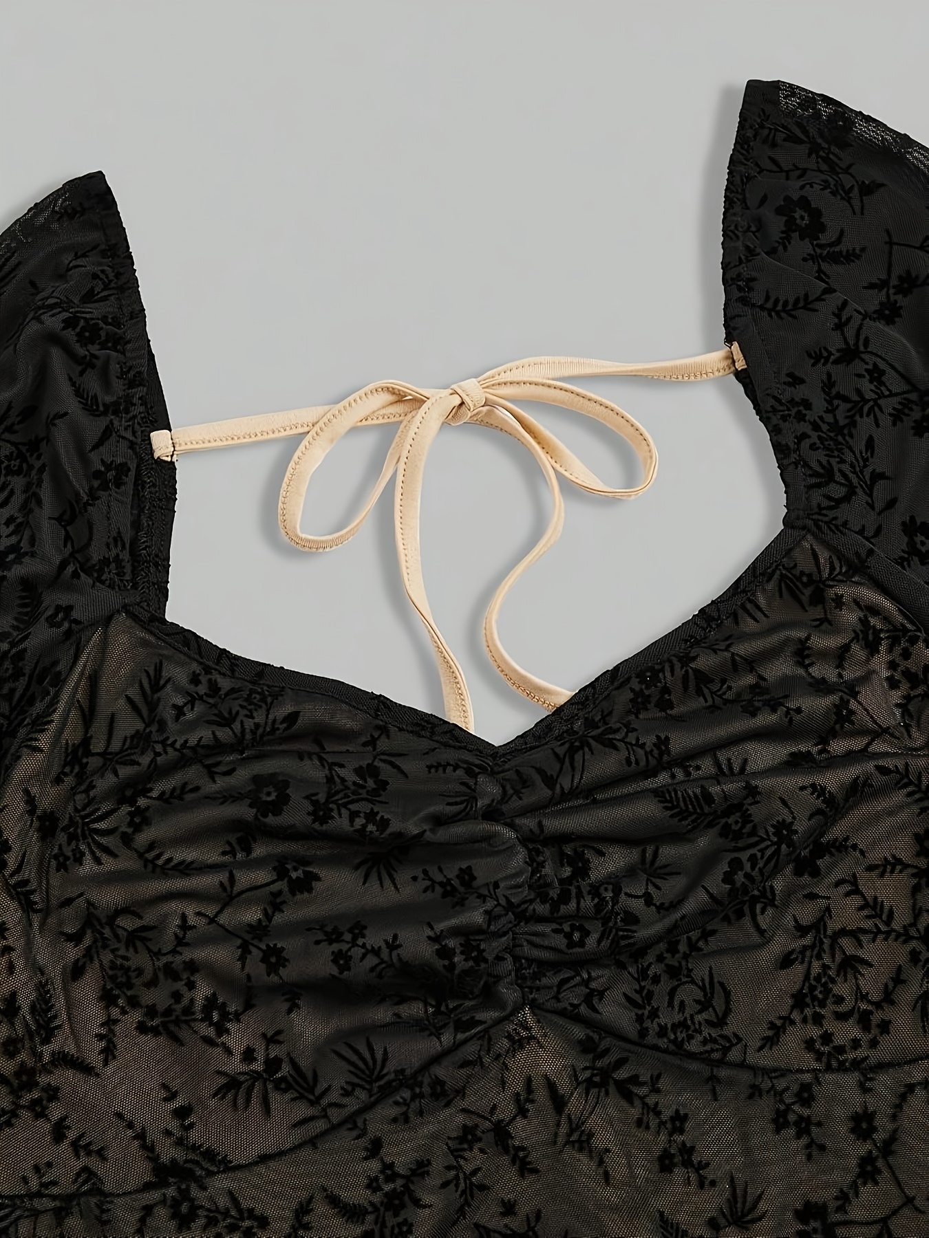 Plus Size - Elegant Plus Size Women'S Faux Fur Mesh Bell Sleeve Dress - Square Neck, Long Sleeve, Black with Golden Accents, All-Season Midi Dress for Formal Occasions, Formal Dresses Elegant, Fitted Silhouette