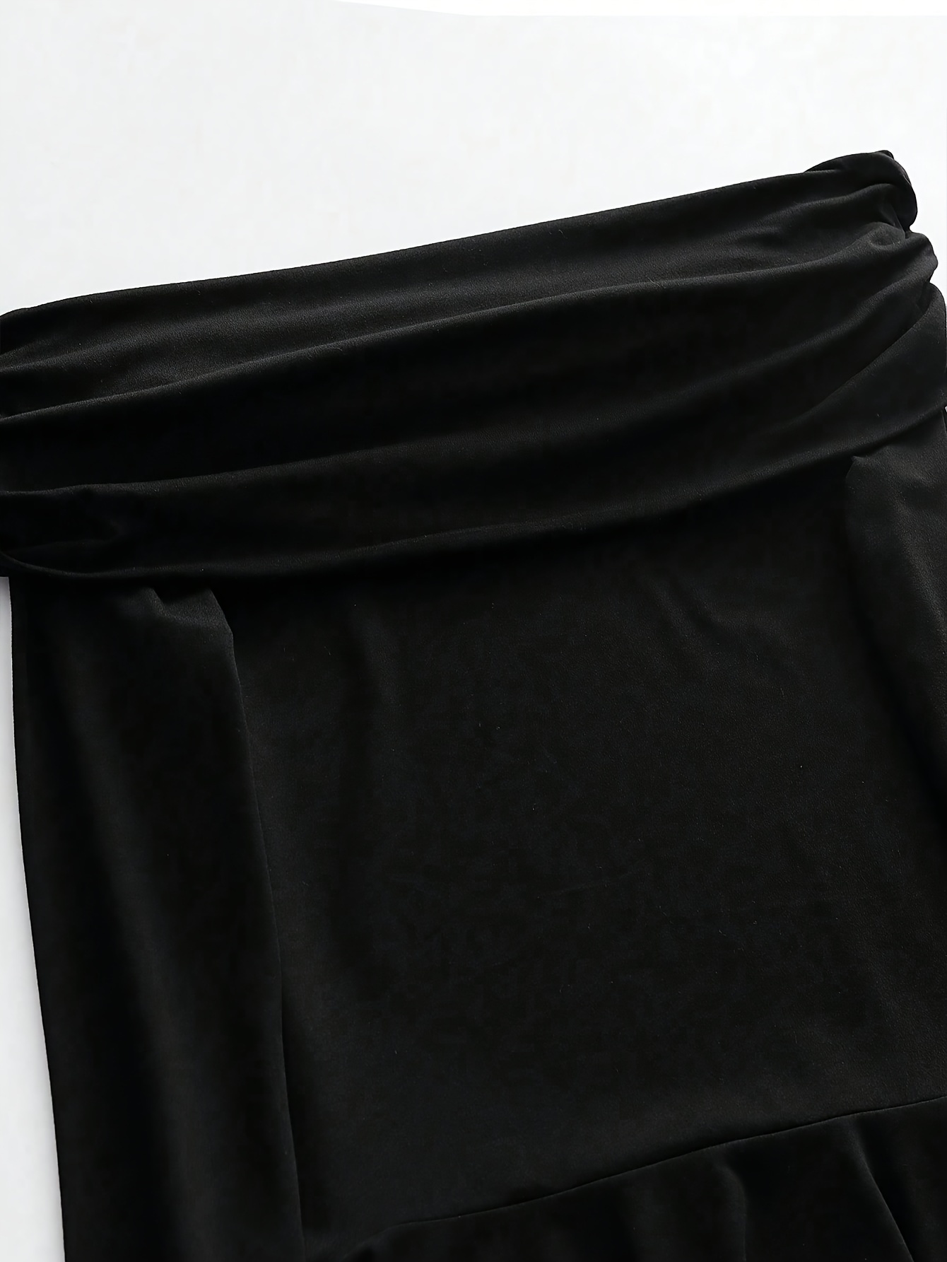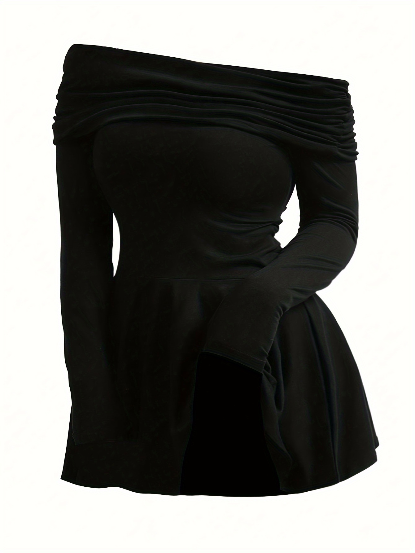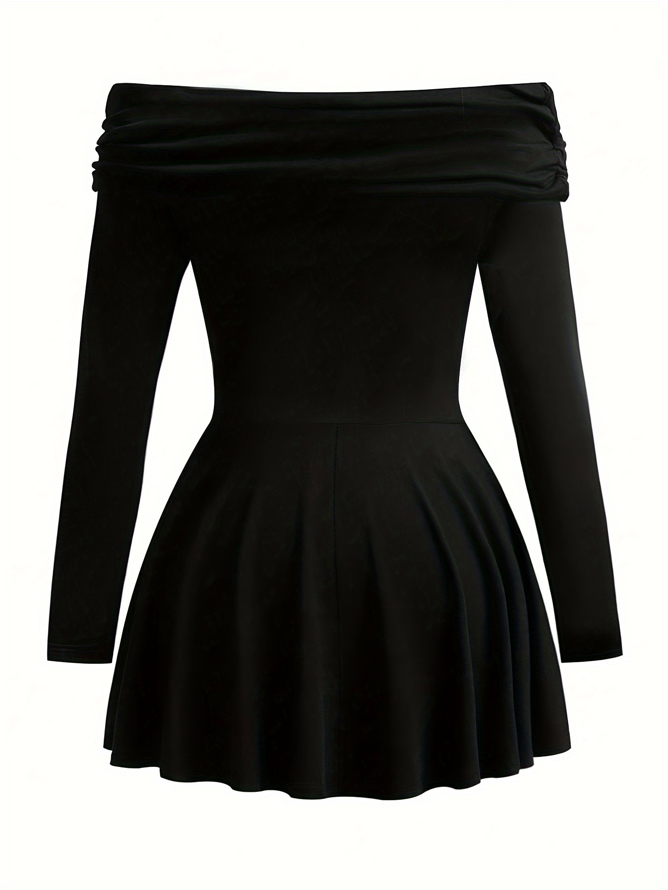 [Plus Size Party Dress] Plus Size Elegant Formal Party Dress | Flared Skirt, Offshoulder Neckline, Black Evening Gown for Women | Machine Washable, Comfortable Fit, Stylish Outfit, Fashion Lovers, Special Occasion, Everyday Outfits