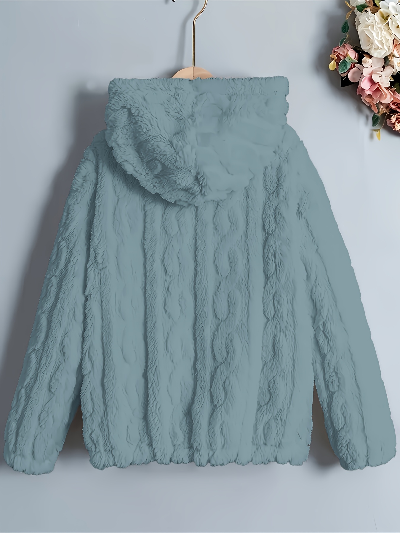 Plus Size - Women'S Cozy Fleece-Lined Hooded Jacket - Thick Warm Winter Coat with Pockets, Soft Plush Lining, Elegant Casual Outerwear for Fall & Winter