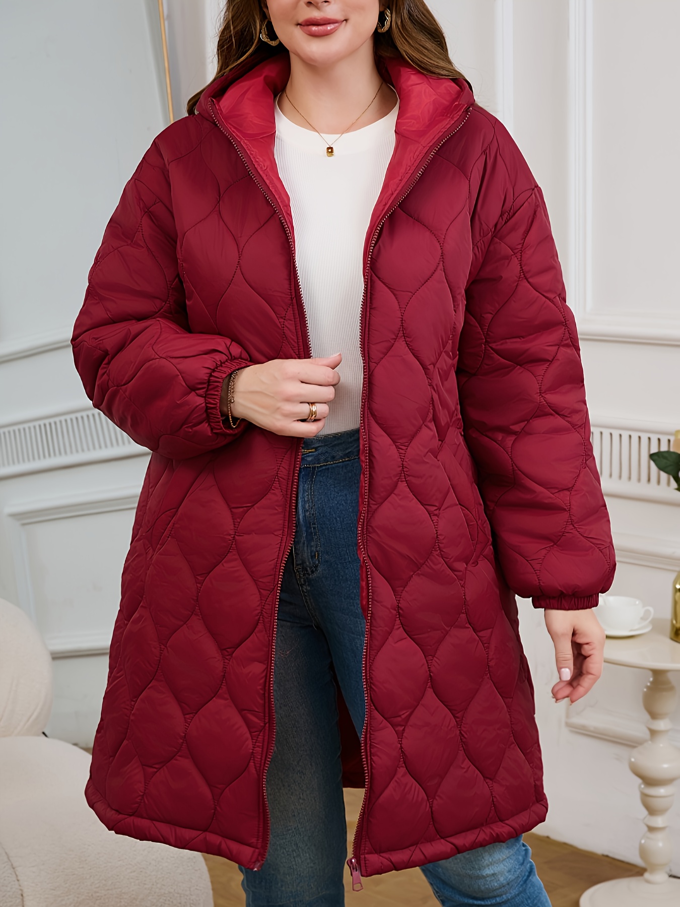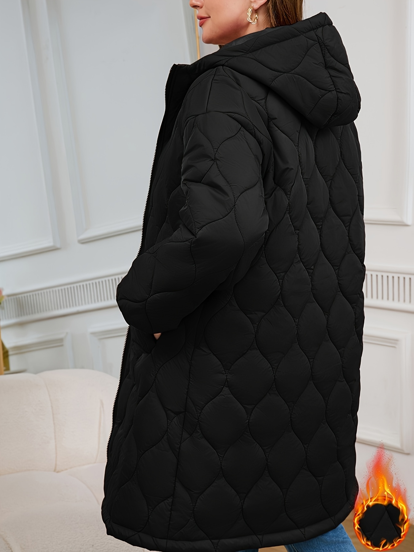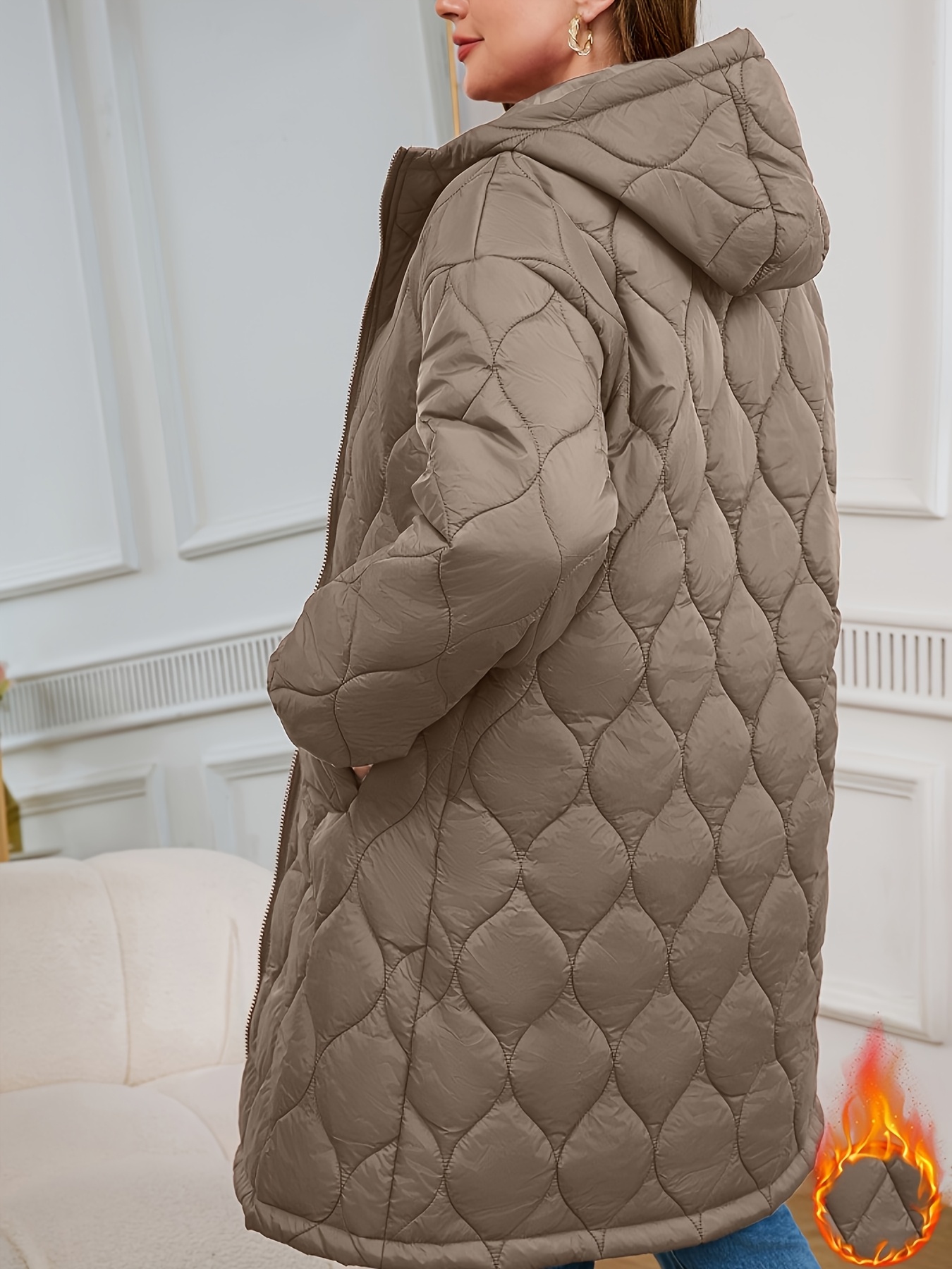 [Quilted Hooded Jacket] Soft Quilted Women's Elegant Hooded Jacket | All-Season Machine Washable Outerwear, Zipper Closure & Tailored Fit for Casual or Formal Wear, Everyday Comfort Coat