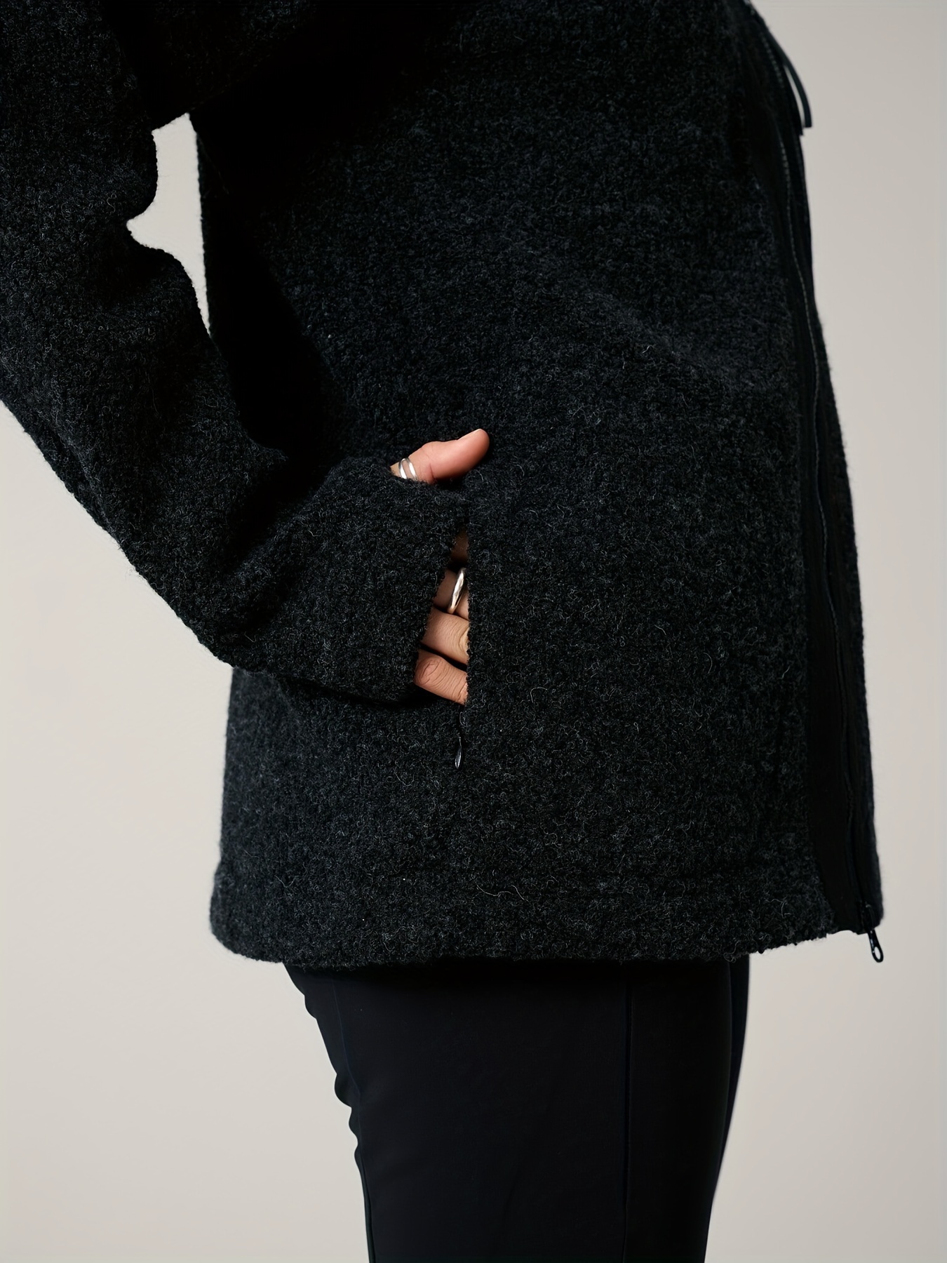 Winter Black High Collar Jacket - Outdoor Casual, Front Zipper, Hidden Zipper Insert Bag