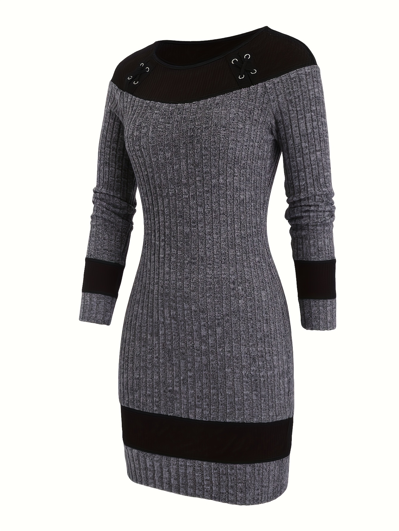 [Chic Plus Size Dress] Plus Size Women's Casual Chic Long Sleeve Dress - Stretchy Office to Party Outfit, Flattering Fit for Everyday & Formal Events, Machine Washable Fall/Spring Attire, Comfortable Material, Versatile Fashion