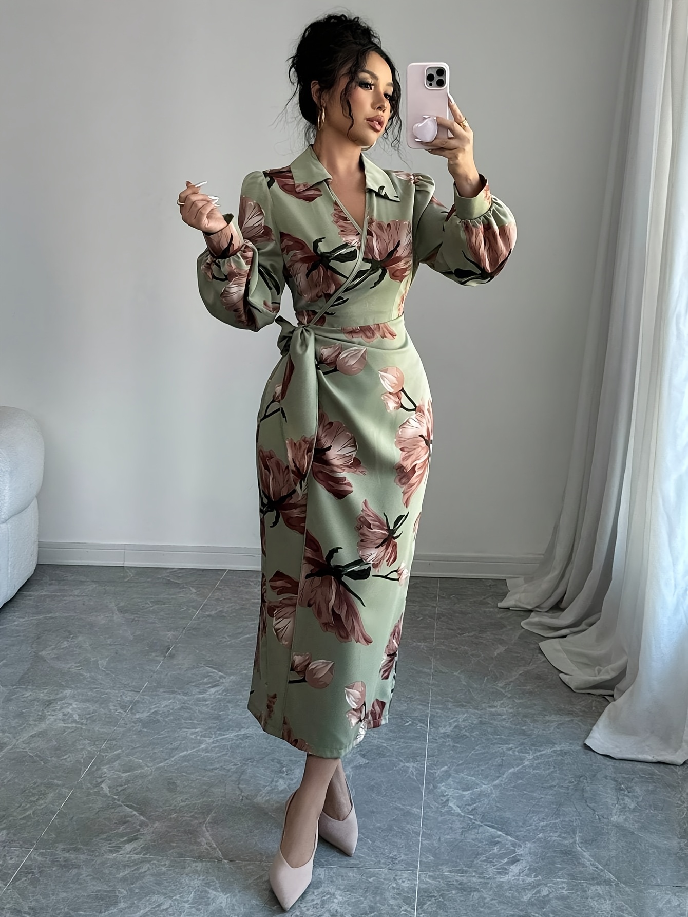 Plus Size, Women's Floral Print maxi Dress - Elegant V-Neck Long Formal & Casual Dresses, Non-Stretchy Fabric, Machine Washable for Wedding, Party, Everyday Outfits - Plus Size Friendly, Cute Dresses