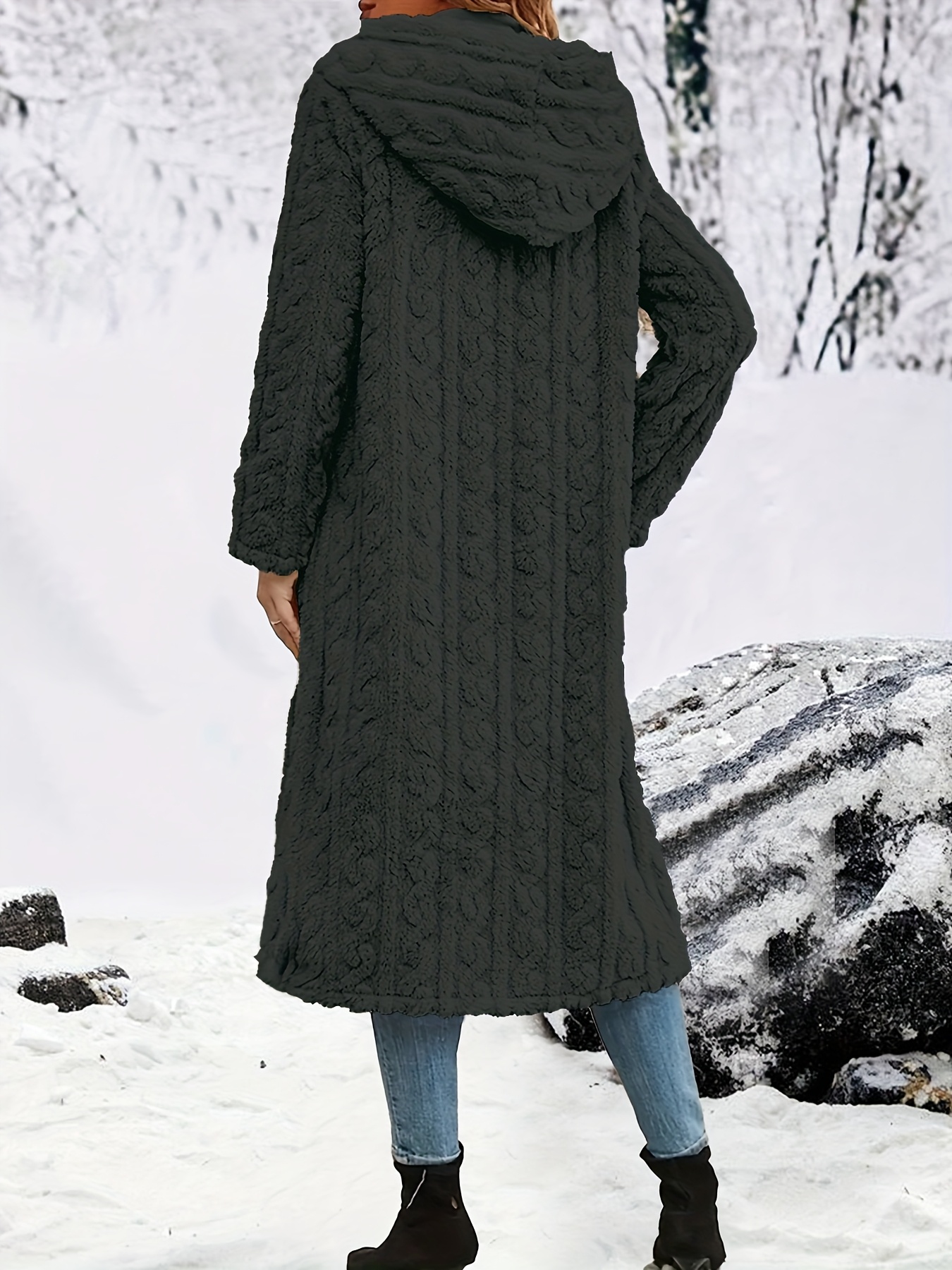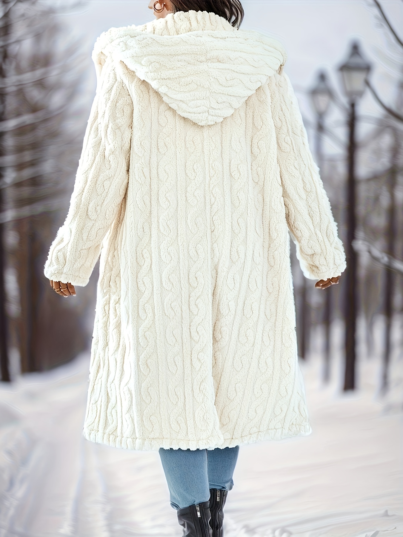 Plus Size - Women'S Plush Fleece-Lined Hooded Coat - Cozy Double-Breasted Mid-Length Winter Coat with Fluffy Lining, Elegant Solid Color Design for Fall/Winter, Warm & Stylish Outerwear, Winter Coats, Fall Fashion, Soft Texture