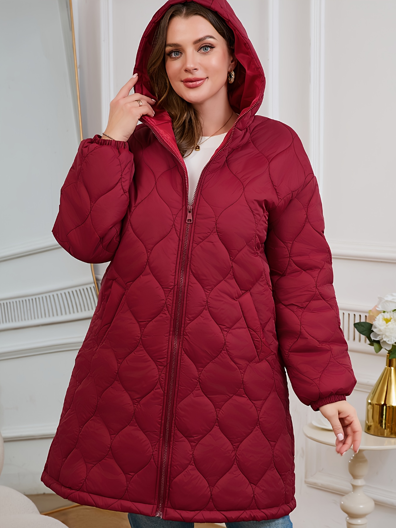 [Quilted Hooded Jacket] Soft Quilted Women's Elegant Hooded Jacket | All-Season Machine Washable Outerwear, Zipper Closure & Tailored Fit for Casual or Formal Wear, Everyday Comfort Coat