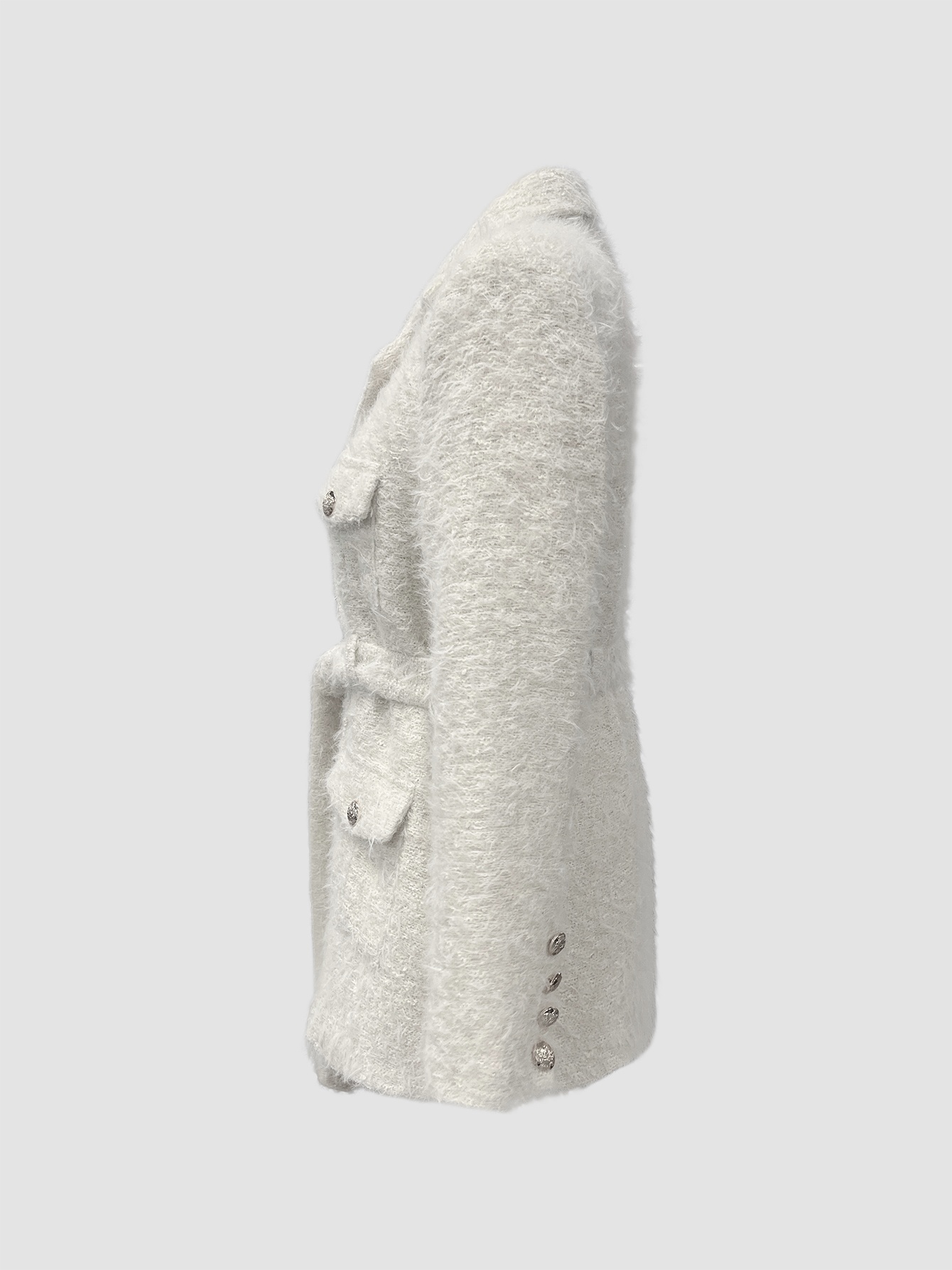 [Elegant Coat] Long Sleeve Elegant Belted Coat | Structured H-Silhouette Jacket with Golden-Tone Buttons & Fur-Lined Cuffs, Machine Washable Solid Color Outerwear for Spring/Fall