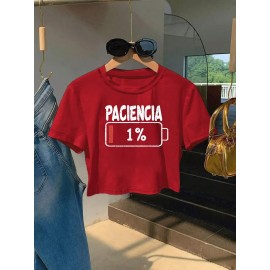 Women'S Yellow "Paciencia" Graphic Tee - Casual Short Sleeve, Round Neck, Machine Washable, Slim Fit, Stylish Summer Top with Battery Icon Design, Casual Summer Wear | Playful Graphic Tee | Comfortable Fit
